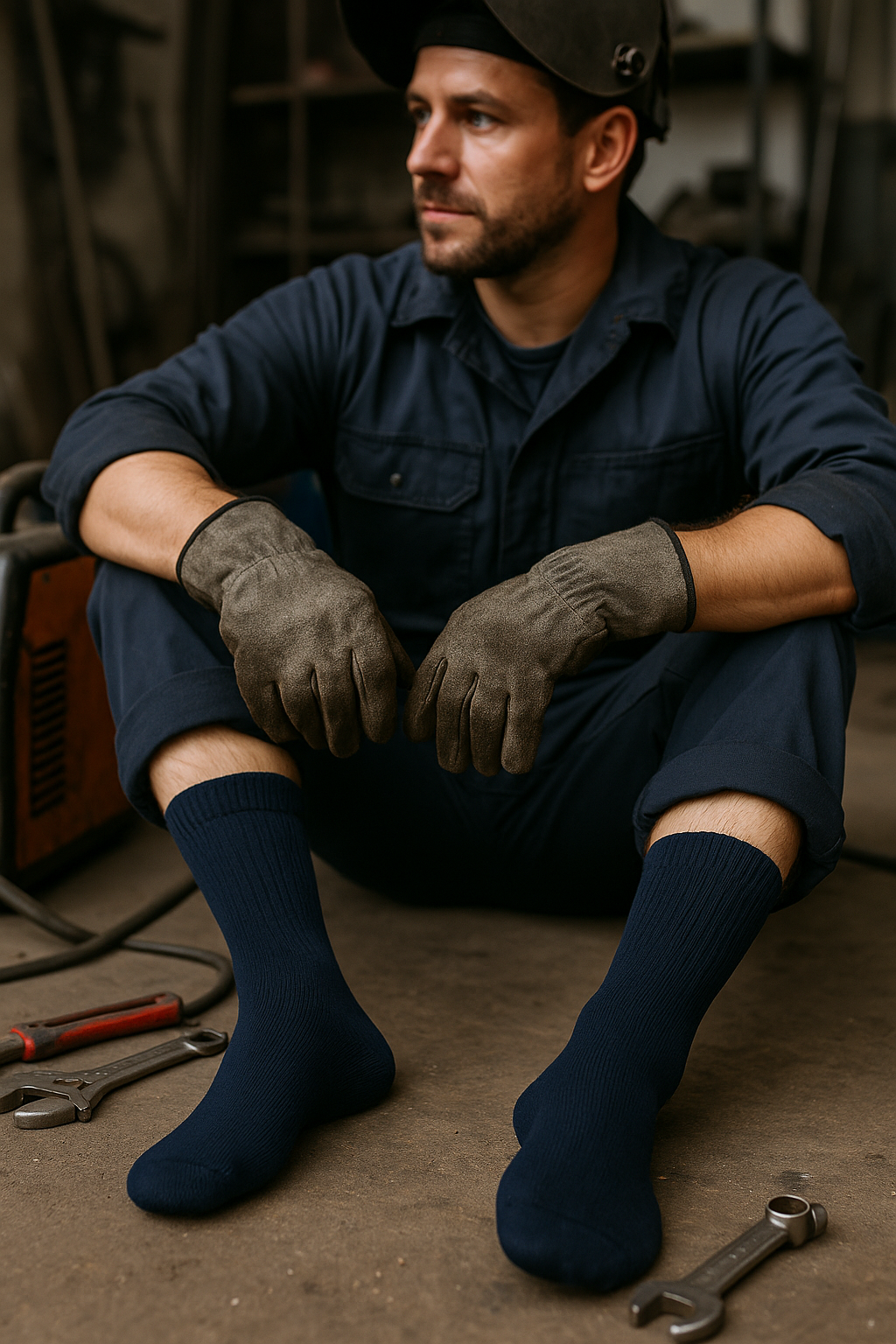 Estos calcetines ignífugos están diseñados para no pegarse a la piel en caso de exposición al fuego, evitando quemaduras graves. Su composición de modacrílico y algodón proporciona una barrera resistente al fuego, mientras que el poliéster, spandex y fibra antiestática , garantiza comodidad, elasticidad y protección contra descargas electrostáticas. Ideal para trabajos industriales, soldadura y entornos con riesgo térmico o eléctrico. PROTEGE TUS PIES. Consíguelos ahora y trabaja con seguridad.